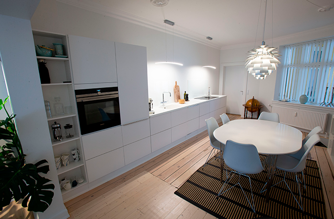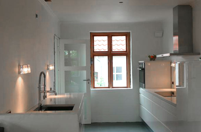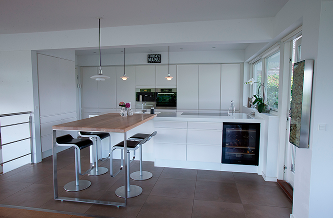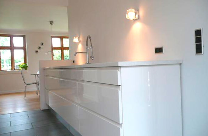 Køkken inspirationHer kan du få dig et overblik over hvad der skal laves med vores produkter og hvad andre har lavet før. Kunde billederHer er billeder som er tilsendt af vores egne kuner eller billeder vi har taget ved kunden. Kunde: Hans Henrik Nørger Efter at have set os omkring hos mange af de kendte leverandører af køkkenløsninger, blev vi klare over at vi ikke behøvede den store vejledning i hvordan vores nye køkken skulle indrettes. Da vi også havde valgt selv at sætte køkkenet op, begyndte vi at tegne op og finde mål på de elementer vi havde brug for. Derefter indhentede vi priser de steder vi havde besøgt og fandt en pris på elementer varierende fra ca. 30.000 kr. for de mest skrabede løsninger med standard udtræk m.m. og så op til ca. 75.000 kr. for modeller med luksus skuffer m.m. Projektet lå et stykke tid i skuffen, indtil jeg faldt over ”billigskabe.dk”. Deres produkter lignede de dyre løsninger jeg havde set, men priserne lå under selv hvad flere af de billige forretninger havde kunne komme op med.Lidt skeptiske bestilte vi en prøvelåge af den type vi drømte om. Allerede to dage efter ankom lågen og vi gik i gang med en husmandstest. Vi skrabede, tegnede, ridsede og på andre måder mishandlede prøvelågen for at se hvor holdbar den var. Til vores glæde viste det sig at billigskabe.dk's beskrivelse af kvaliteten ikke var overdrevet. Jeg satte mig så til at bestille alt på computeren og kontaktede derefter Billigskabe.dk. Da vi skulle holde konfirmation derhjemme måneden efter, ville det passe os bedst at udskyde køkkenprojektet lidt endnu og først få leveret elementerne dagen efter festen var overstået. Dette blev lovet og til fulde overholdt, for på dagen kl. 11.00 ankom fragtmanden med én hel palle med alle vores usamlede elementer pænt stablet og vandtæt pakket i plastikfilm. Han kørte det hel op i carporten og jeg gik i gang med at pakke ud, for at efterse at alt var med og beskadiget. Det hele stemte og jeg gik i gang med at samle elementerne. Selvom det tog lidt ekstra tid selv at samle, var det ikke nogen større håndværksmæssig kunst og burde kunne klares af de fleste. Undervejs løb jeg ind i et mindre problem med en skabsside, hvor samle hullerne ikke var forboret korrekt og nogle låger, der ikke havde det udseende, som vi havde forestillet os. Jeg ringede til billigskabe.dk og fik fat i Birk Aagaard, som straks fik sat gang i fabrikken og næste dag modtog jeg en korrekt skabsside. Samtidig fik vi frit valg mellem at beholde lågerne eller have en anden type tilsendt. Alt uden beregning. Under samling og opsætning af køkkenet kunne jeg få et bedre indtryk af kvaliteten på elementerne og kan kun sige, at den er på fuld højde med det jeg så i de dyre køkkenforretninger, der er ikke sparet på noget. Hængsler, skuffe moduler og beslag er simpelthen af første klasses kvalitet. En anden ting af første klasses kvalitet jeg fandt, var hjælpsomheden fra billigskabe.dk side. Jeg var lidt skeptisk fra start, da vi havde hørt venner og bekendte der købte i køkkenforretningerne lokalt, som fortalte om leveringssvigt og ingen respons på klager. Billigskabe.dk engagement derimod har været af første klasse. Der har været opfølgning på alt og interessen for mig som kunde og mine behov har faktisk været i centrum. Mange lover dette i dag, men det er sjælden at se det udført som Billigskabe.dk gør. Læg dertil at prisen på det hele kun løb op i 32.000 kr. Når vores badeværelser og bryggers står for tur, er det Billigskabe.dk vi vælger igen!!! Det var så min ”historie”. Den kan måske virke lidt for positivt, men det er faktisk sådan, jeg har oplevet det! Kunde: Ole VinjeboKunde: Thomas DolbyKunde: Nicolai og Karen IbsøInspiration billederKommer flere steder fra dog oftes fra producenten.Inspiration video |